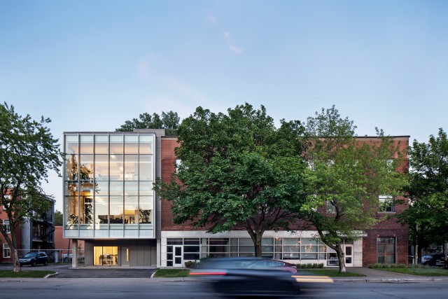 En réponse à la forte croissance de notre équipe — qui a doublé en quelques années —, nous avons procédé à la modernisation de nos bureaux en trois phases successives : la construction d’un agrandissement de 516 m² vers l'est sur la rue Rachel; le réaménagement intérieur des 2e et 3e étages de l’ancien bâtiment industriel situé en face des ateliers Angus et acquis à la fin des années 1970; et le réaménagement du rez-de-chaussée.